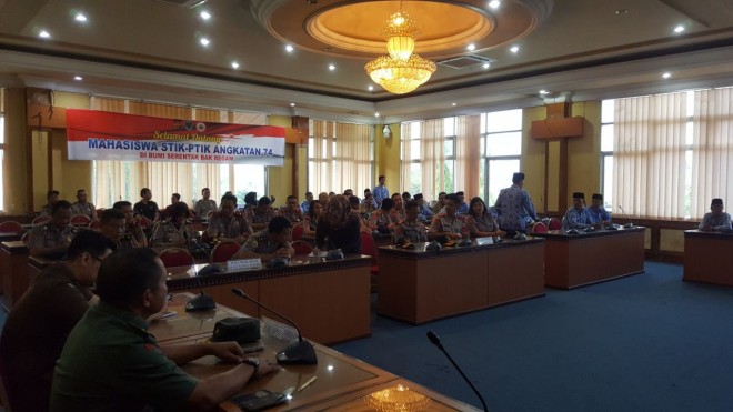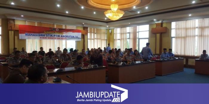 JAMBIUPDATE.CO, JAMBI - Sejumlah mahasiswa Sekolah Tinggi Ilmu Kepolisian (STIK-PTIK) Widya Dharana Lastarya Angkatan ke 47 Jakarta melakukan kunjungan di Kabupaten Batang Hari. Rombobgan dipimpin oleh Kombes Pol Ade Sapari SIk MH.