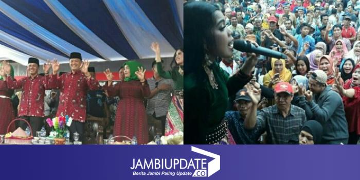 JAMBIUPDATE.CO, KERINCI - Hadirnya artis Ibu Kota dari Sumatera Bara, Ratu Sikumbang, di Gunung Raya, Senin (18/06) membuat suasana kampanye terbatas Calon Bupati dan Wakil Bupati Kerinci nomor urut 3, Zainal Abidin dan Arsal Apri sangat meriah.