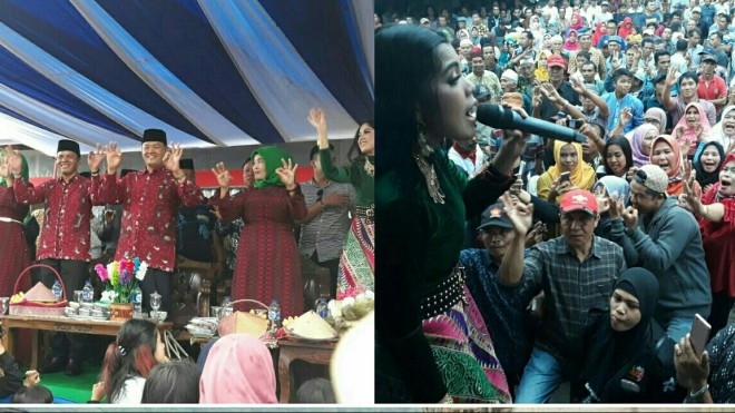 Ratu se jauah-jauah dari padang sangajo tibo di Kerinci demi mendukung Pak Zainal Jo Pak Arsal, kalau nio caliak Ratu tampil lai di Kerinci tolong coblos no 3 tanggal 27 Juni bisuak yo, tegas Ratu Sikumbang.