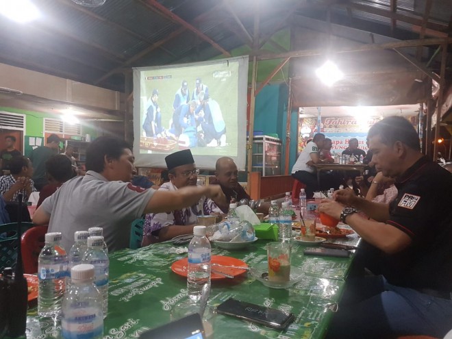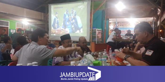 Sambil menyantap mie, dua orang calon pemimpin Kota Jambi itu larut dan berbaur bersama warga menyaksikan pertandingan Piala Dunia antara Nigeria kontra Islandia.