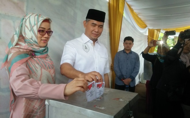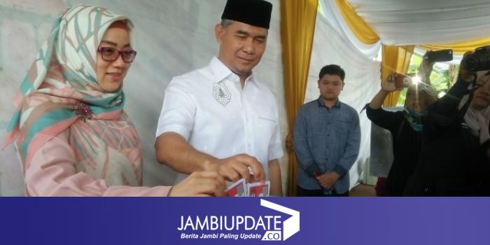 Sy Fasha yang merupakan kandidat calon Wali Kota Jambi nomor urut 2. Ia datang bersama keluarga untuk menggunakan hak suaranya sebagai pemilih di TPS 07.