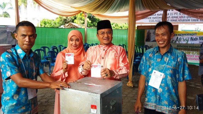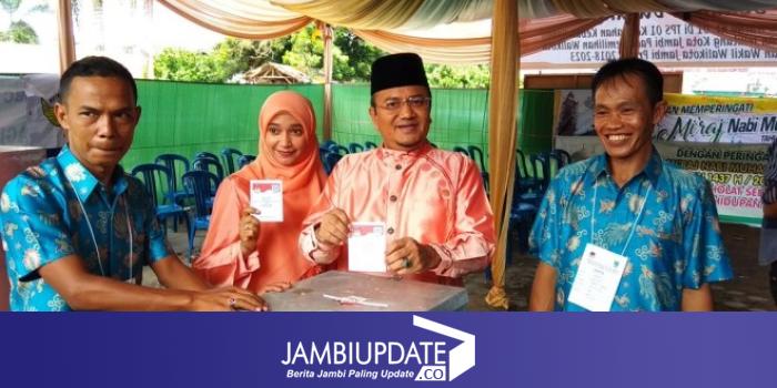 Bertempat di TPS 01 Kelurahan Kebun Handil, Kecamatan Jelutung, Rabu (27/6), pasangan dari Sy Fasha tersebut hadir di TPS didampingi istrinya.
