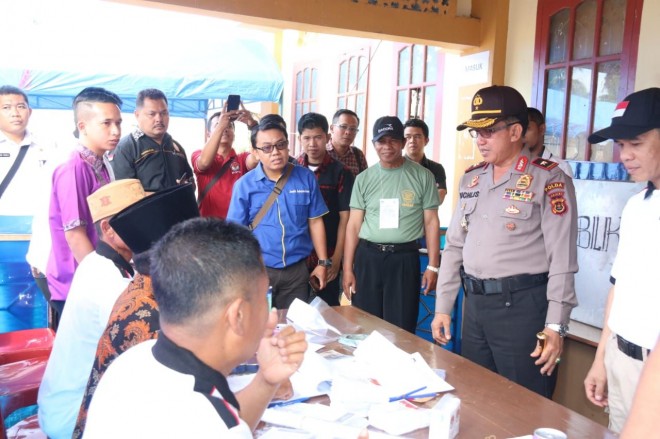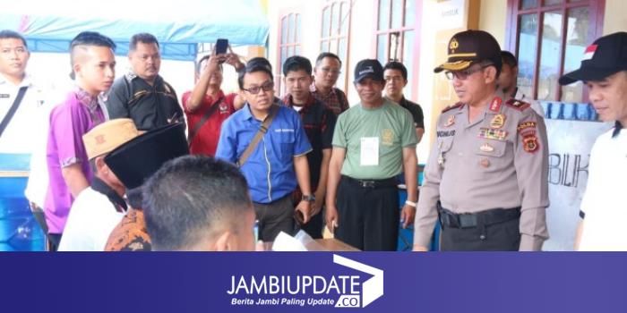 JAMBIUPDATE.CO, JAMBI - Kapolda Jambi Brigjen Pol Drs Muchlis AS serta Sekda Provinsi Jambi, M Dianto beserta rombongan, hari ini (27/6) meninjau langsung suasana pemungutan suara di sejumlah TPS di Kerinci.