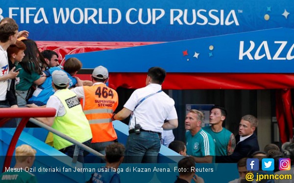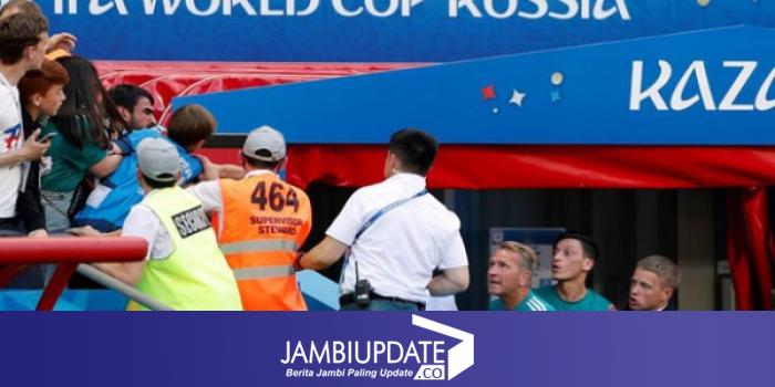 JAMBIUPDATE.CO, KAZAN - Gelandang timnas Jerman, Mesut Ozil bentrok dengan seorang suporter di Kazan Arena, usai Jerman secara menyedihkan gagal mengalahkan Korea dalam matchday pemungkas, sekaligus harus angkat koper dari Piala Dunia 2018, Rabu (27/6) malam WIB.