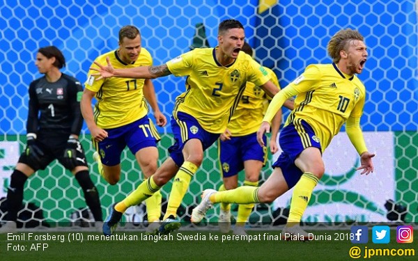 JAMBIUPDATE.CO, SAINT PETERSBURG - Swedia melangkah ke perempat final Piala Dunia 2018 usai menyingkirkan Swiss dalam laga 16 Besar di Saint Petersburg, Selasa (3/7) malam WIB.
