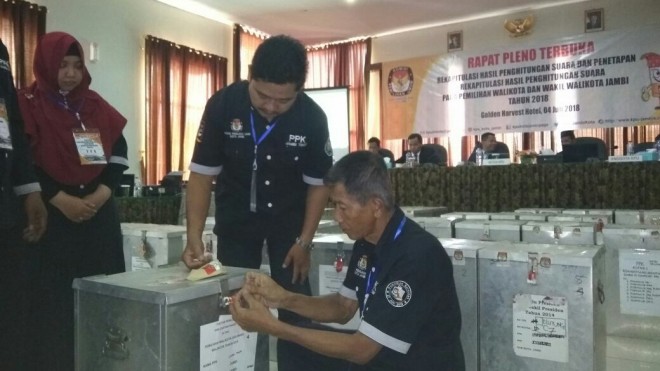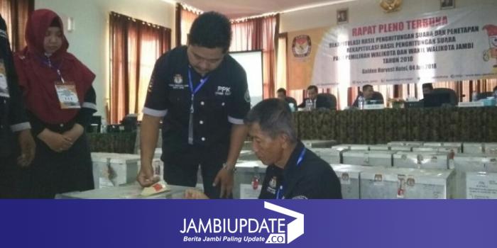 JAMBIUPDATE.CO, JAMBI - Komisi Pemilihan Umum (KPU) Kota Jambi menggelar pleno rekapitulasi hasil pemungutan dan penghitungan suara Pilwako Jambi 2018.