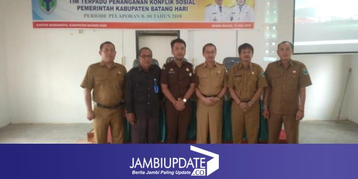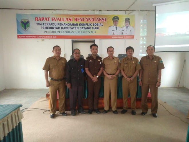 JAMBIUPDATE.CO, MUARABULIAN - Kantor Kesatuan Bangsa dan Politik (Kesbangpol) melalui Tim Terpadu Penanganan Konflik Sosial Kabupaten Batanghari menggelar rapat evaluasi rencana aksi di aula kantor Kesbangpol, Selasa (10/07).