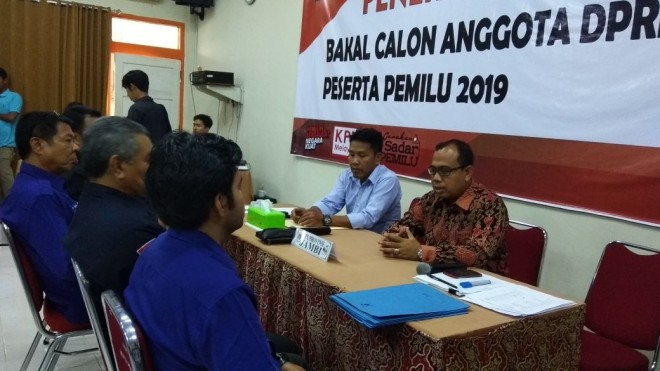 Satu per satu berkas berkas pendaftaran yang diserahkan ke komisioner KPU Provinsi Jambi, Sanusi dan Afnizal, mulai diperiksa. (wan)