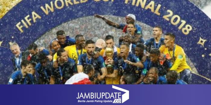 JAMBIUPDATE.CO, MOSCOW - Timnas Prancis mendapat hadiah uang dari FIFA sebesar GBP 29 juta atau sekitar Rp 533,06 miliar, atas sukses mereka menjadi juara Piala Dunia 2018. Jumlah tersebut lebih besar Rp 30 miliar dibandingkan hadiah yang diterima Jerman saat menjadi jawara PD 2014 di Brasil.