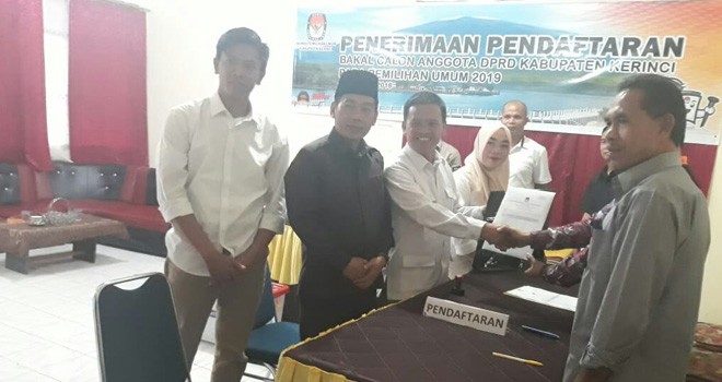 Pendaftaran dilakukan langsung oleh Ketua DPC Gerindra, Edminuddin, yang didampingi oleh sejumlah pengurus, Sekjen Arfan Kamil, Bendahara, dan anggota Irwandi dan sejumlah anggota Gerindra Kerinci. "Kita hanya mendaftar 30 caleg, yang didaftarkan merupakan kader terbaik, setiap dapil kouta perempuan dan laki - laki sudah terpenuhi," kata Ketua DPC Gerindra, Kabupaten Kerinci, Edminuddin, Senin (17/7) sore.