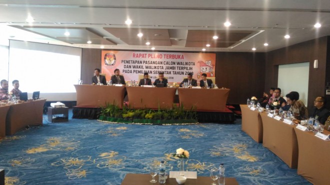 Ketua KPU Kota Jambi, Erin Arifin dalam pleno yang dipimpinnya mengatakan penetapan calon terpilih akan menjadi kekuatan hukum. "Dengan ini menetapkan pasangan nomor urut 2, Dr. H. Syarif Fasha dan Dr. dr. H. Maulana MKM sebagai pemenang Pilwako 2018 ditandatangani," kata Wein Arifin sembari mengentok palu.