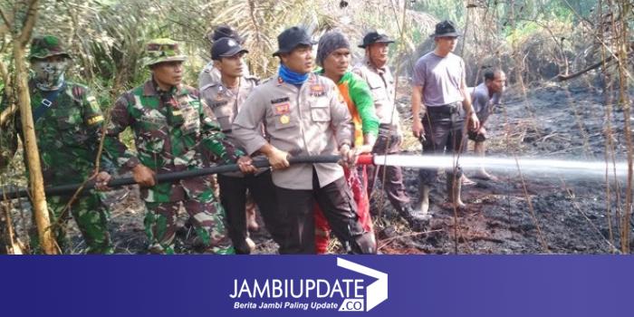 Kapolres Muarojambi dan TNI saat melakukan Pemadaman Karhutla di Desa Lopak alai kemarin.