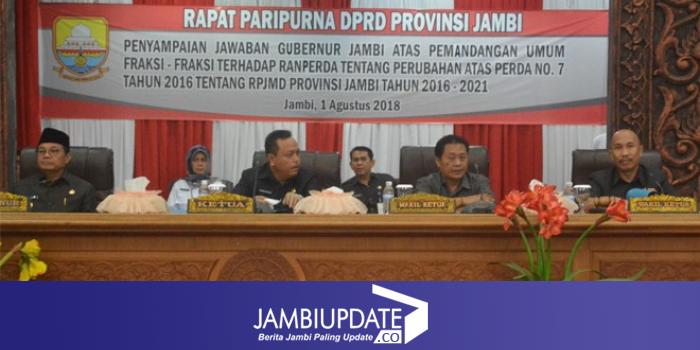 JAMBIUPDATE.CO, JAMBI - DPRD Provinsi Jambi menggelar Rapat Paripurna dengan agenda Jawaban Pemerintah atas Pemandangan Umum Fraksi-fraksi terhadap Ranperda Perubahan RPJMD tahun 2016-2021.