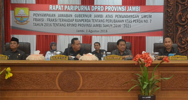 Rabu (1/8), Rapat yang dipimpin oleh Wakil Ketua DPRD Provinsi Jambi, Syahbandar, dihadiri langsung oleh Plt Gubernur Jambi Fachrori Umar.