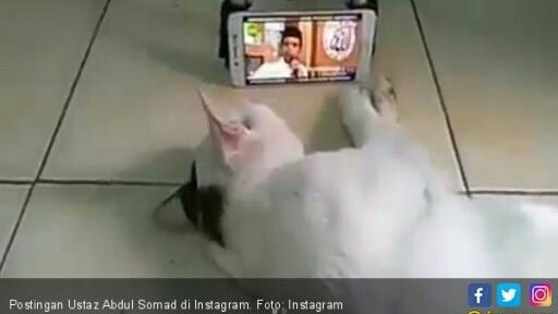 Di sana tampak seekor kucing dan sebuah telepon genggam yang sedang memutar video ceramah Abdul Somad. "Kucing "zaman now," tulis Abdul Somad.