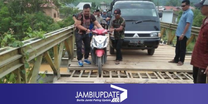 JAMBIUPDATE.CO, SAROLANGUN - Dua kali gagal diperbaiki melalui dana Anggaran Pendapatan dan Belanja Daerah (APBD) Kabupaten, Jembatan yang ada di Desa Muara Mensao Kecamatan Limun, yang merupakan satu-satunya jembatan akses warga untuk menuju desa lain, kembali dikeluhkan masyarakat setempat.Pasalnya, jembatan tersebut kondisinya semakin hari semakin parah.