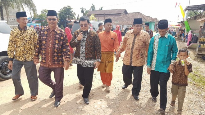 JAMBIUPDATE.CO, JAMBI - Ivan Wirata bersama Hasan Basri Agus (HBA) L, menghadiri undangan Walimatul Urat, warga Suak Landis, Kecamatan Kumpeh, Kabupaten Muaro Jambi, Minggu (26/8).
