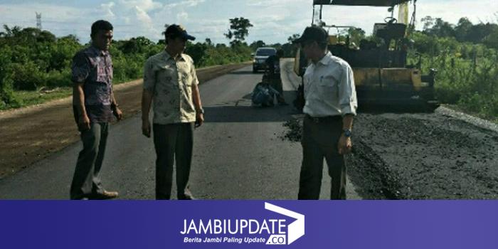 Hadi Sarosa, Kabid BM Dinas PUPR Sarolangun mengecek pengerjaan pengaspalan Jalan.