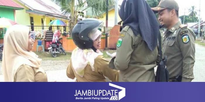 Satu persatu ASN yang melintas di jalan yang berada di Kecamatan Tebo Tengah diberhentikan petugas Satpol PP.