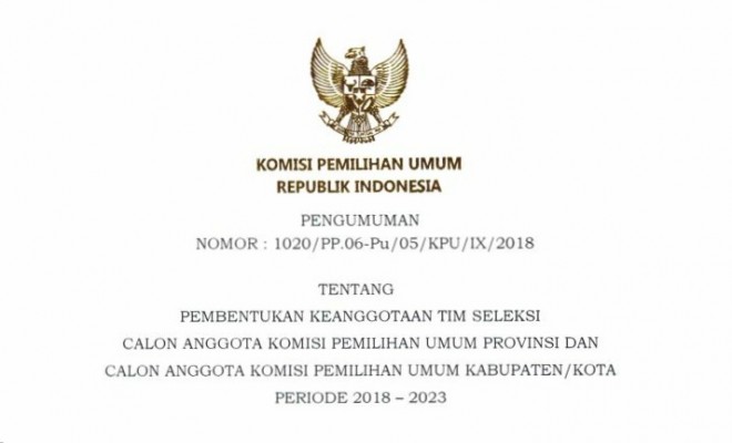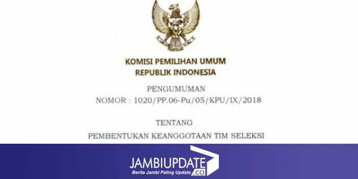 JAMBIUPDATE.CO, JAMBI - Komisi Pemilihan Umum (KPU) RI, membentuk Tim Seleksi (Timsel) Anggota KPU provinsi dan kabupaten/kota se Indonesia untuk masa jabatan 2018-2023.