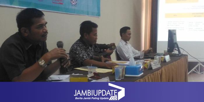 iklan Komisioner KPU Provinsi Jambi, Apnizal (tengah) memberikan penjelasan pada peserta terkait pelaksanaan kampanye Pemilu 2019.