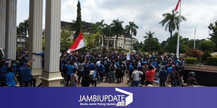 JAMBIUPDATE.CO, JAMBI - Aksi demonstrasi ratusan mahasiswa UIN STS Jambi di depan Gedung DPRD Provinsi Jambi, Kamis (20/9), berlangsung ricuh.