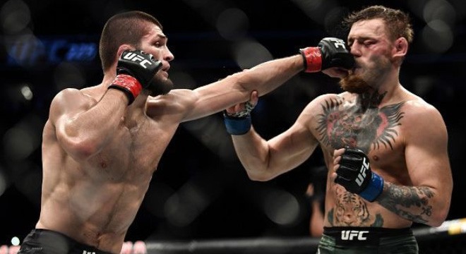 Nurmagomedov awalnya mendominasi pertarungan. Dirinya sempat membuat tidak berdaya McGregor dengan pola permainan bawahnya. Hingga pada ronde ke 4, McGregor harus menyerah karena dicekik Nurmagomedov.