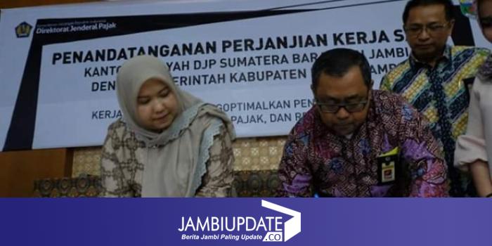 JAMBIUPDATE.CO, SENGETI - Pemerintah Kabupaten melakukan penanadatanganan Perjanjian Kerjasama atau Memoramdum Of Understanding (MoU) dengan Kantor Dirjen Pajak (DJP) Wilayah Sumbar-Jambi.