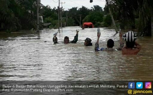 JAMBIUPDATE.CO, PASAMAN BARAT - Beberapa daerah di Kabupaten Pasaman Barat (Pasbar), Sumbar, dilanda banjir dan longsor. Sejumlah rumah tertimbun longsor, beberapa jembatan gantung hanyut dan sejumlah sekolah terdampak banjir diliburkan.