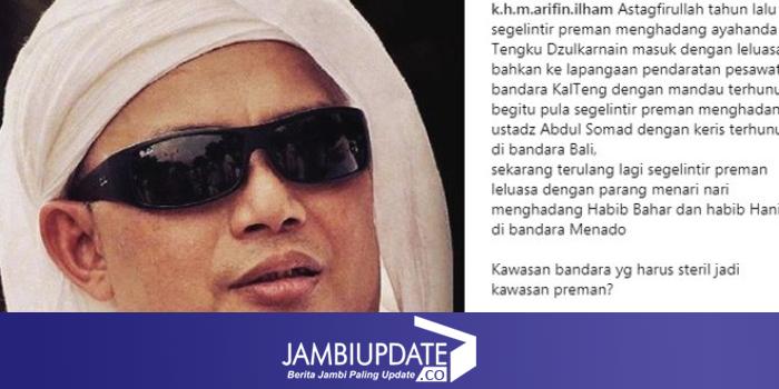 JAMBIUPDATE.CO, JAKARTA - Kabar persekusi yang yang dilakukan sejumlah massa terhadap Habib Hanif bin Abdurahman Alatas dan Bahar bin Alwi bin Smith di bandara Sam Ratulangi Manado, senin (15/10/2018), membuat geram Ustad Arifin Ilham.