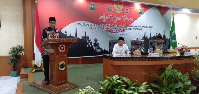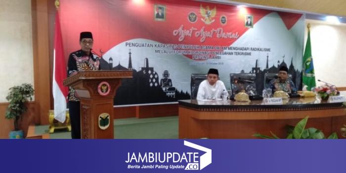 JAMBIUPDATE.CO, MUARABULIAN - Forum Koordinasi Pencegahan Terorisme (FKPT) Provinsi Jambi menggelar kegiatan Penguatan Kapasitas Penyuluh Agama Dalam Menghadapi Radikalisme, Kamis (18/10) di ruang Pola Besar Kantor Bupati Batanghari.