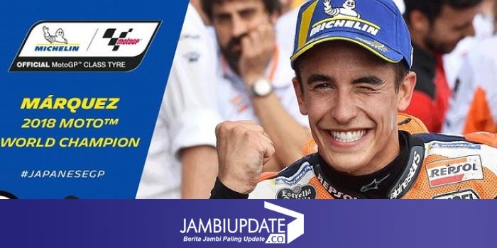 JAMBIUPDATE.CO, MOTEGI Pebalap Repsol Honda, Marc Marquez menyegel gelar juara dunia MotoGP 2018 usai memenangi balapan di Sirkuit Motegi, Jepang, Minggu (21/10/2018).