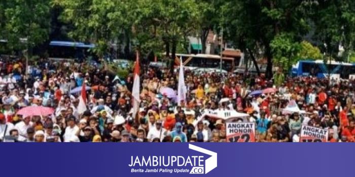JAMBIUPDATE.CO, JAKARTA - Lagu Meraih Mimpi Via Vallen mengiringi aksi honorer K2 (kategori dua). Suara Via semakin menambah semangat puluhan ribu honorer K2.