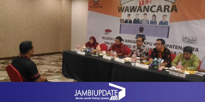 JAMBIUPDATE.CO, JAMBI- Tahapan wawancara calon anggota Komisi Pemilihan Umum (KPU) Kabupaten Kerinci, Merangin, Kota Jambi dan Kota Sungai Penuh telah rampung. Hasilnya, tim seleksi (Timsel) telah menetapkan sepuluh besar nama terpilih dari masing-masing daerah.