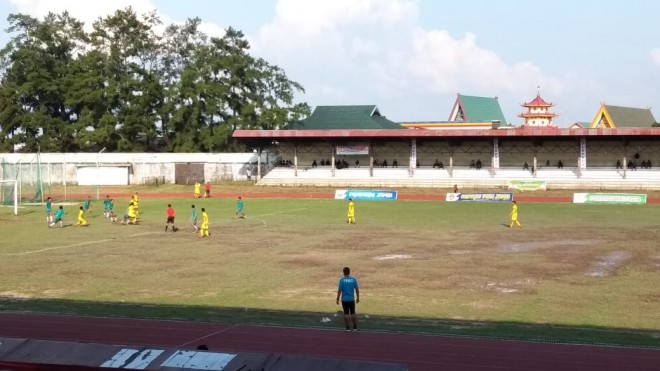 Hingga peluit tanda berakhirnya babak pertama dibuntikan wasit, skor 4-0 untuk keunggulan Kota Jambi masih bertahan. (wan)