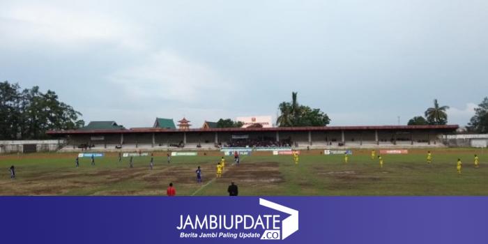 Pantauan jambiupdate.co di stadion Tri Lomba Juang, keseblasan Kota Jambi mengenakan kostum kuning, sementara keseblasan Muaro Jambi mengenakan kostum Biru.