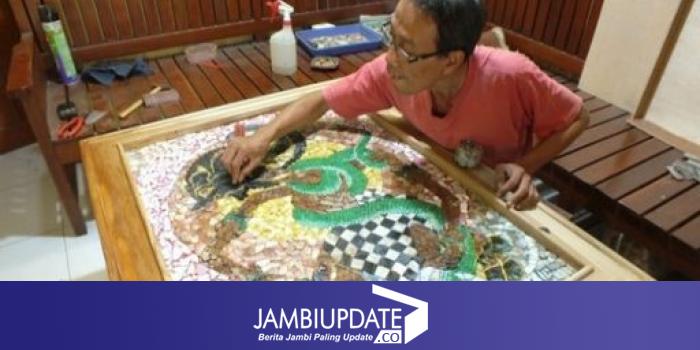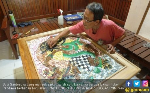 JAMBIUPDATE.CO, - Hasil kreasi Budi Santoso membuat harga batu akik tetap selangit. Warga Bumirejo, Lendah, Kulonprogo itu mengubah koleksi batu akik mentah miliknya menjadi lukisan mozaik.SIAPA tak kenal batu akik? Pamornya kini redup. Namun, di tangan kreatif Budi Santoso derajat batu akik tetaplah tinggi. Meski wujud aslinya masih mentah. Bahkan berserakan di rumahnya. Budi memanfaatkannya sebagai bahan membuat lukisan. Mozaik. Hasilnya, sungguh luar biasa.
