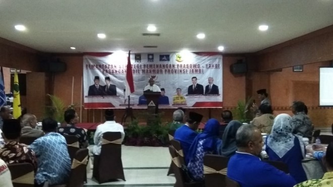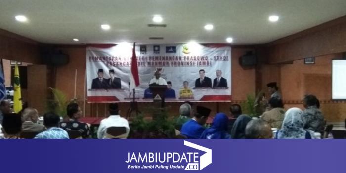 JAMBIUPDATE.CO, JAMBI - Perolehan suara Pasangan Calon Presiden dan Wakil Presiden Prabowo Subianto - Sandiaga Uno di Provinsi Jambi ditargetkan mencapai 70 persen pada Pilpres 2019 mendatang.