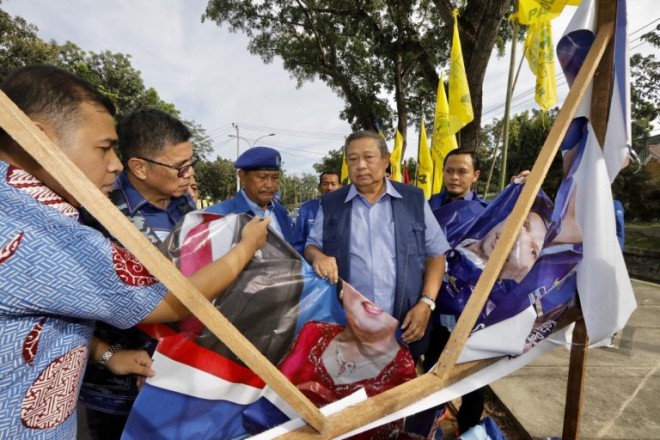SBY menegaskan, lebih baik Demokrat mengalah daripada menyaksikan bendera-bendera Demokrat dan baliho-baliho dirobek, diturunkan, diinjak-injak serta dibuang ke selokan. Karena hal itu sama saja dengan menginjak-injak, merobek-robek, dan membuang saya ke selokan, ujar SBY di Pekanbaru, Riau, Sabtu (15/12).