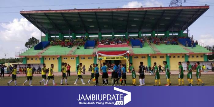 JAMBIUPDATE.CO, MERANGIN - Pertandingan lanjutan Gubernur Cup 2019 antara kesebelasan Batanghari Vs Sarolangun pada Selasa (08/01/2019) di Stadion Bumi Masurai Merangin sempat ditunda selama 30 menit.