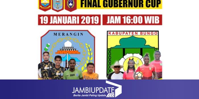 JAMBIUPDATE.CO, MERANGIN - Partai final Gubernur Cup 2019 akan mempertemukan tim Kabupaten Merangin melawan tim Kabupaten Muaro Bungo yang rencananya akan digelar pada hari Sabtu (18/01/2019) sekitar pukul16.00 WIB.
