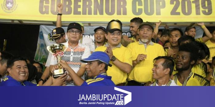 Hingga peluit tanda babak kedua berbunyi skor 1:0 bertahan, sehingga menghantarkan tim Kabupaten Merangin menjadi juara Gubernur Cup 2019.