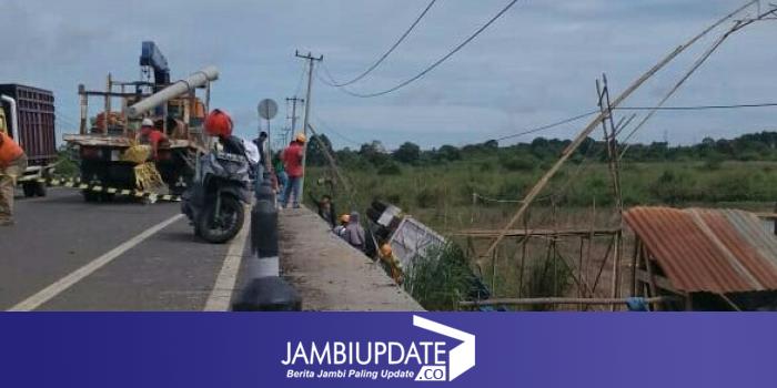 JAMBIUPDATE.CO, JAMBI - Truk pengangkut Batubara nyungsep ke sungai di Jalan Baru, Kecamatan Jambi Timur, Kota Jambi. Peristiwa ini terjadi Selasa (22/1) sekitar pukul 05.00 WIB.