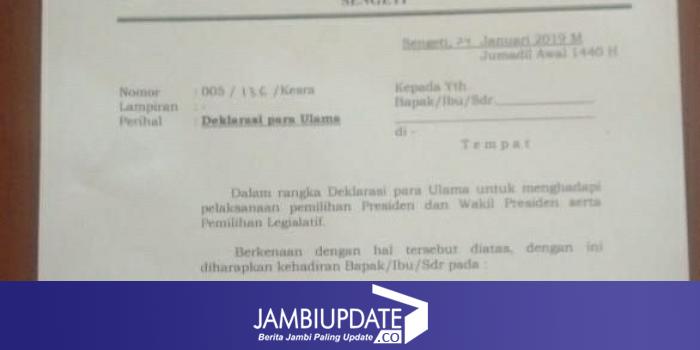 JAMBIUPDATE.CO, JAMBI Bawaslu Provinsi Jambi sudah menerima informasi terkait dengan beredarnya undangan deklarasi dai yang ditandatangani Sekda Muaro Jambi.