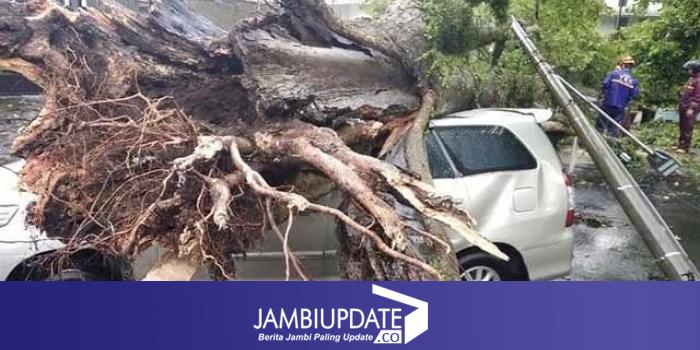 Selanjutnya, pohon tumbang menimpa 2 unit mobil dan 10 unit sepeda motor. Akibatnya, 4 orang mengalami luka. Seluruh korban sudah mendapat penanganan dengan dirujuk ke rumah sakit terdekat.