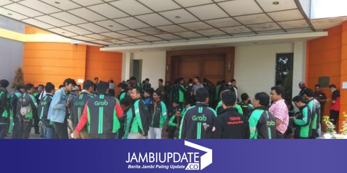 JAMBIUPDATE.CO, JAMBI- Ratusan pengemudi Grab Bike atau yang biasa dikenal ojek online menggeruduk kantor Grab Indonesia Wilayah Jambi yang berlokasi di Hotel Ratu Jambi, Kamis (21/2).