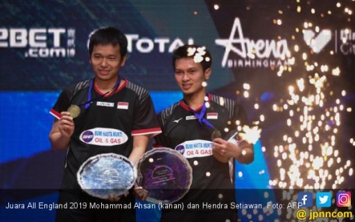 Dalam partai final di Arena Birmingham, Minggu (10/3) malam, Ahsan (31 tahun) dan Hendra (34) mengalahkan pasangan muda dari Malaysia Aaron Chia (22) dan Soh Wooi Yik (21) dengan rubber game 11-21, 21-14, 21-12.