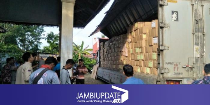 Komisi Pemilihan Umum (KPU) Kota Jambi menerima pengiriman surat suara Pemilu 2019 dari perusahaan percetakan. Foto : Ist