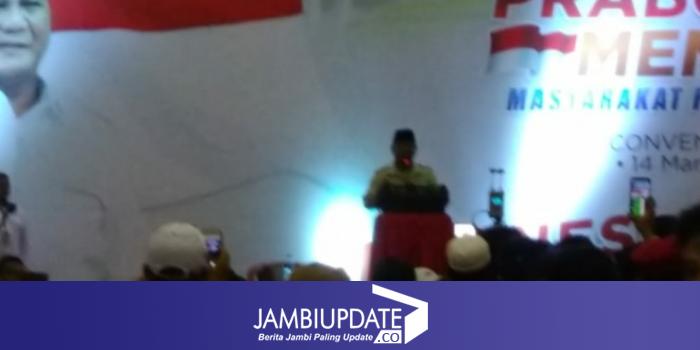 Pidato Capres Prabowo Subianto dihadapan ribuan masyarakat Jambi di Ratu Convention Center (RCC). Foto : Safwan / Jambiupdate