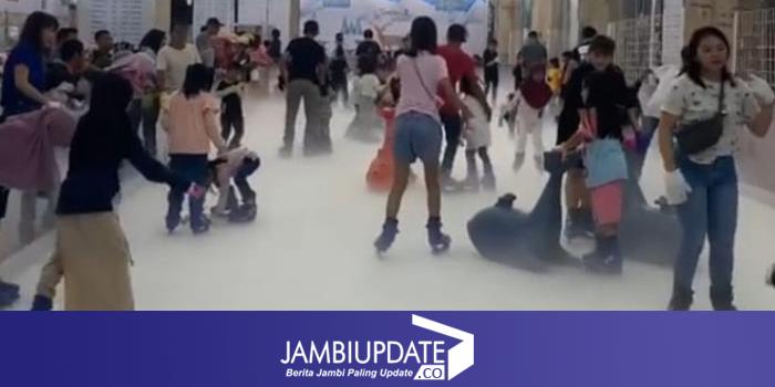 JAMBIUPDATE.CO, JAMBI- Permainan ice skating masih menjadi tujuan wisata masyarakat Jambi ketika ke Jamtos. Salah satu alasan mengapa memilih wisata ini, sebab Jamtos menyediakan wahana ice skating yang lebih panjang dan lebih luas.